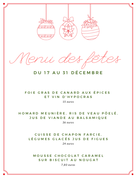 Menu des fêtes au Bistrot de la Place - du 17 au 31 décembre 2021