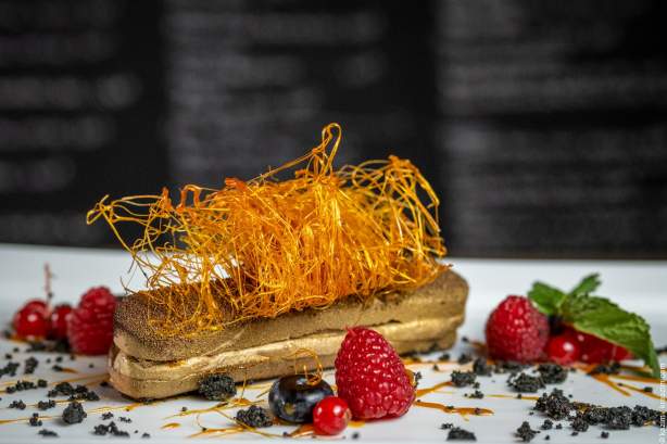 MOUSSE CHOCOLAT CARAMEL SUR BISCUIT AU NOUGAT
